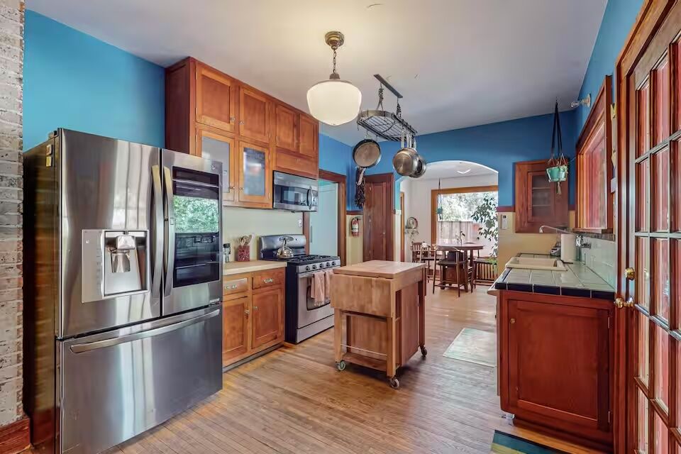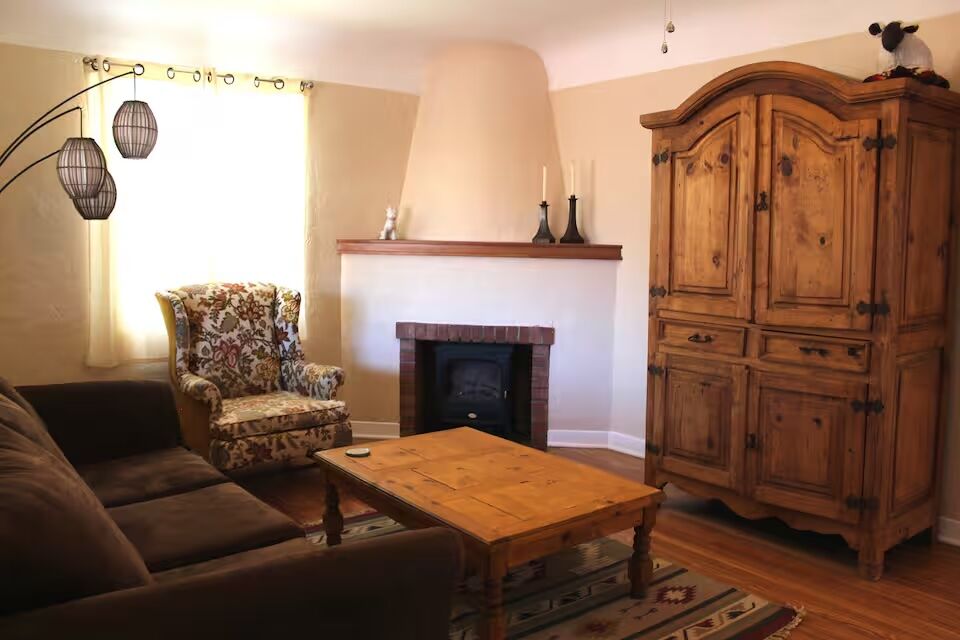See more photos Right in the heart of Nob Hill, this three-bedroom home leans into Albuquerque’s Southwest character. There are riginal hardwood floors, saltillo tile, arched ceilings, and built-in cabinetry—paired with a mix of rustic and mid-century furnishings and artwork from local makers. The location means you can step out and walk to cafés, restaurants, and shops, which makes a difference if you’d rather not spend your trip in the car.